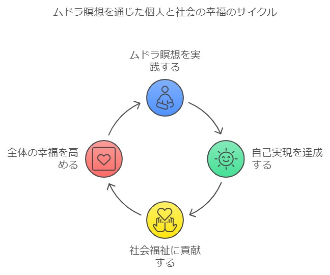 このプロセスを通じて、社会の福祉という全体の幸福のために自己犠牲を超え、自己を満たし幸せに生きる力を手に入れることができます。ムドラ瞑想法は、人生を最良のものとして生きるためのテクニックとして生まれ、時代を超えて発達してきました。