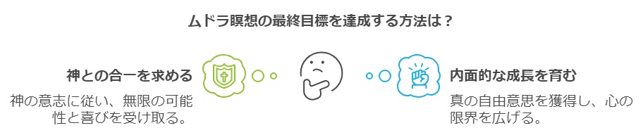 最終目的は、真の自由意思を獲得し自身の心を無限に成長させて、神との合一、神の与える意思と被造物の受取る意思の合一、生命としての意思を持ちながら無限の可能性とよろこびを受け取ること。