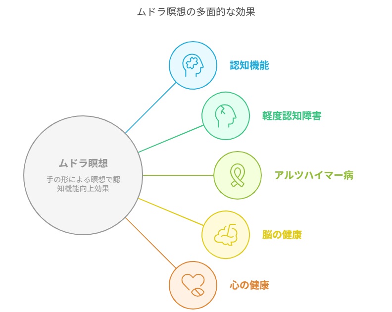 ムドラ瞑想を含む特定の瞑想法によって、軽度認知障害やアルツハイマー型認知症の進行を遅らせたり、改善の兆しが見られたという報告もあります。